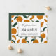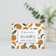 El frente de nuestra tarjeta de anuncio de nueva dirección con tema de Florida muestra por lo que es conocido el Estado del Sol... ¡las naranjas! La parte posterior de la tarjeta presenta una gran flor de naranja artística sobre un marco de texto con texto de ejemplo preimpreso que puede revisar con su mensaje personal mecanografiado o eliminar para tener espacio para una nota escrita a mano. Todo el texto en el anverso y reverso de nuestra tarjeta de cambio de dirección se puede revisar fácilmente en la plantilla Personalizar. Parte de nuestra Colección de Cambio de Dirección de Florida, este tema de diseño también incluye una tarjeta de anuncio de nueva casa más grande con sobre, una postal y dos etiquetas de nueva dirección.