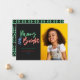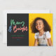 Navidades multifoto tarjeta de vacaciones de neón de color moderno brillante. Efecto neón colorido Merry y escritura brillante con espacio para dos fotografías de estilo vintage y el respaldo de diseño de árboles de navidad neón.