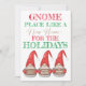 Este diseño festivo incluye gnomes para hacer una nueva invitación en casa durante las vacaciones. Añade tu nueva dirección al dorso de la tarjeta, así como un saludo de vacaciones. Los nombres de familia se pueden agregar al principio y al final del diseño.