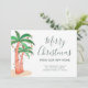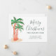 ¿Se está mudando a un destino tropical a estos Navidades? Esta célebre tarjeta de invitación en movimiento cuenta con palmeras acuáticas decoradas con coloridas luces de cuerda y una elegante tipografía de escritura. Personalizable fácil. Acuarela original © Michele Davies.