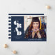 Celebra el gran logro de tu graduación con esta invitación moderna de graduación azul marino y blanco. Presenta la nota de la palabra escrita en un semental audaz a la izquierda con espacio para una foto del graduado a la derecha.
