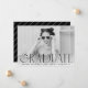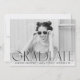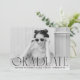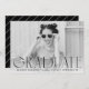 Anuncie su graduación con estilo con nuestros modernos anuncios de graduación fotográfica. Los simples anuncios de graduación presentan tu foto preferida horizontal senior con "Graduate" mostrado en un texto negro moderno. Personalice la parte delantera de los anuncios de graduación de moda agregando el nombre del graduado, el nombre de la escuela y el año de graduación. La tarjeta se invierte para mostrar un diseño rayado en blanco y negro.