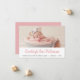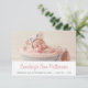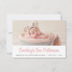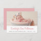 Anuncio clásico del nacimiento de un chica con foto del bebé con el nombre de abajo en rosado vertical condensado con letras retro en un fondo blanco, con espacio para la fecha y hora de nacimiento, el peso y la longitud de abajo en el tipo de letra gris sans serif. La parte posterior de la tarjeta es un tono rosado a juego.