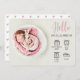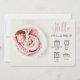 Tarjeta de anuncio de natalidad moderna y minimalista que incluye una foto de su bebé recién nacida, con un texto superpuesto en antiguas letras rosas y grises oscuras que decía Hola, soy Elizabeth (personalizable con el nombre de su bebé). Las estadísticas de nacimiento se pueden personalizar editando el texto de la plantilla y se representan con iconos grises simples. La parte trasera de la tarjeta presenta un lindo patrón de corazón rosado antiguo sobre un fondo blanco. Si desea más personalización o elementos coincidentes, no dude en ponerse en contacto conmigo en zolicestore@hotmail.com