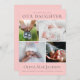 Nuestra "presentando a nuestra hija", bebé rosada, anuncio de nacimiento de Collage de fotos - ¡un doloroso collage de amor! El momento en el que has estado esperando ansiosamente está aquí, y estamos encantados de ayudarte a compartir la alegría con nuestro anuncio de parto "Presentando a nuestra hija". Esta exquisita invitación cuenta con un reconfortante diseño de collage de 4 fotos que te permite mostrar tu preciosa pequeña desde todos los ángulos. Completa con estadísticas esenciales de natalidad, esta invitación es la manera perfecta de presentar a tu querida hija al mundo.