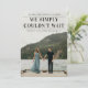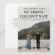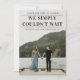 Un anuncio de boda oportuno que incluye el titular No pudimos esperar. Una excelente manera de hacer saber a los seres queridos que se han casado. La parte trasera permite un mensaje personalizado para amigos y familiares o se puede quitar si se desea. Haga clic en editar para personalizar.