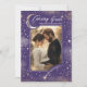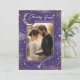 Tarjetas fotográficas de invitación de oro celeste y púrpura "Próximamente"