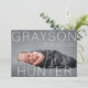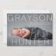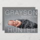 Nombre de tipo moderno por encima del anuncio del nacimiento de un recién nacido fotográfico