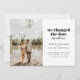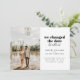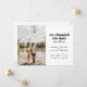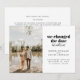 Si cambiaste la fecha de tu boda, pero decidiste no esperar para casarte y te fugaste en su lugar, comparte tus grandes noticias con tus seres queridos con este anuncio de huida. Cuenta con una sola foto así como espacio para los detalles sobre tu huida. La parte trasera de la tarjeta tiene espacio para un mensaje personal.