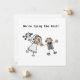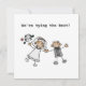 Una adorable novia y novio con figuras de palitos con grandes sonrisas y texto que dice Nos Casamos en camisetas, sudaderas, tops, bolsas, tazas, tarjetas, pegatinas, recuerdos, llaveros, almohadas de novia y novio, ¡y muchos otros artículos!