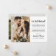 Haz saber a todos que ya están casados con este anuncio de foto boda con letra de pincel. "¡Nos casamos!" en letras blancas juguetonas superpuestas en la foto de la parte frontal con un acento de corazón, nombres y fecha de la boda. La parte trasera incluye una segunda foto y una carta personalizable sobre su ceremonia privada. Intercambie sus propias fotos y personalice todo el texto para compartir su feliz noticia.