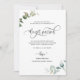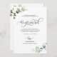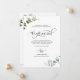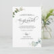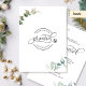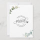 ¿Acabo de casarme? ¡Felicidades! Díganle a su familia y amigos sus buenas noticias con esta elegante tarjeta de Invitación "Nos casamos". Capacidad para agregar su propio mensaje e incluso agregar más líneas de texto seleccionando más personalizar. Frase "Nos casamos" en caligrafía escrita a mano moderna tanto en el frente como en la espalda, así como delicado follaje color agua pintado a mano en una combinación de tonos verdes y suaves y polvorientos azules. El estilo es sencillo y limpio. La tarjeta está de vuelta con un diseño elegante en el centro con los nombres completos de la novia y el novio.