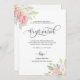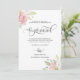 ¿Acabo de casarme? ¡Felicidades! Díganle a su familia y amigos sus buenas noticias con esta elegante tarjeta de Invitación "Nos casamos". Capacidad para agregar su propio mensaje e incluso agregar más líneas de texto seleccionando más personalizar. Frase "Nos casamos" en caligrafía escrita a mano moderna tanto en la parte delantera como en la parte trasera, así como delicados detalles de esquina floral de acuarela pintada a mano con flores y follaje en tonos dorado rosa, rosa rubor, blanco, menta y verde. El estilo es sencillo y limpio. La tarjeta está de vuelta con un diseño elegante en el centro con los nombres completos de la novia y el novio.