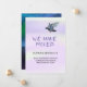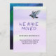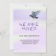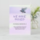 Nos hemos movido, tarjeta de invitación, una pichón voladora en movimiento, con hermosos colores violeta, lila