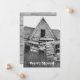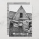 La tarjeta de anuncio de mudanza muestra una foto en blanco y negro de una casa vieja, destartalada, abandonada y desvencijada. Se muestra la puerta principal, las ventanas rotas y el techo inclinado. El reverso de la tarjeta incluye la nueva dirección y la información de contacto. Personalice el texto para anunciar su mudanza.