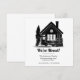 Este hermoso anuncio de mudanza con tema de golf muestra una casa con un carrito de golf y cajas de mudanza aparcadas afuera como anuncio de nueva dirección de mudanza.