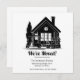 Este encantador anuncio de mudanza con tema de golf muestra una casa con un carrito de golf y cajas de mudanza estacionadas afuera como un anuncio de nueva dirección.