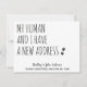 ¡Mi Humano Y Yo Tenemos Una Nueva Dirección! Deja que tu mejor amigo anuncie tu movimiento con esta tierna y divertida tarjeta de invitación de mascota en movimiento. Personaliza los nombres del perro o gato, y tu nueva dirección. ¡Este perro moviendo invitación es imprescindible para todos los amantes del perro, amantes del gato y cualquier mascotas con patas! DERECHOS RESERVADOS © 2020 Judy Burrows, Black Dog Art - Todos los derechos reservados. Hemos Mudado Nueva Dirección Mascota Perro Invitación De Movimiento
