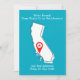 Haz saber a tus seres queridos sobre tu gran mudanza con esta tarjeta de anuncio de "¡Nos hemos mudado! Ven a visitarnos a California". Cuenta con un mapa elegante de tu nuevo estado con un marcador de mapa móvil que apunta a tu nueva dirección. Esta tarjeta hace que compartir tu nueva ubicación sea fácil y divertido. La parte trasera incluye un mensaje personalizado para familiares y amigos, además de un área de texto personalizable para tu nombre y número de teléfono, para que siempre sepan cómo contactarte. Ya sea que los invites a visitar o simplemente para mantenerse en contacto, esta tarjeta es la forma perfecta de compartir tus emocionantes noticias.