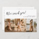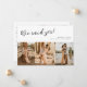 Anunciamos "Nosotros Dijimos Sí" Tarjeta moderna de anuncio de boda con varias fotos presenta un diseño contemporáneo de tarjeta de 2 caras, que muestra una escritura informal en letra a mano, "nosotros dijimos sí" colocada elegantemente encima de su fotografía elegida. Esta tarjeta cuenta con un total de cuatro imágenes, bellamente exhibidas en ambos lados. Usted tiene la libertad de editar el mensaje y la imagen en la parte posterior, agregando su toque personal a este simple pero elegante anuncio de boda. Celebre su amor con esta tarjeta moderna, creando recuerdos preciados para que todos los compartan.