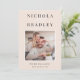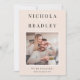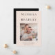Comparte la noticia de tu compromiso con estas elegantes tarjetas de anuncio que presentan una foto cuadrada con sus nombres en la parte superior en letra clásica, unidos por un ampersand ornamentado. Personalice con dos líneas de texto personalizado en la parte inferior para detalles adicionales o su sitio web de boda.