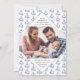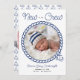 Nuevo en la tarjeta de anuncio de nacimiento de bebé de la tripulación, personalizada con tus fotos en la parte delantera y trasera. Diseño náutico con marco fotográfico de cuerda y anclajes en paleta de colores azul y blanco. Puede añadir el nombre del bebé, la fecha de nacimiento y cualquier otra estadística de nacimiento en la parte delantera, así como su mensaje personalizado en la parte posterior.