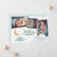 Un diseño divertido y elegante de anuncios de nacimiento que presenta un collage de 3 fotos con un guión elegante de caligrafía y estrellas dibujadas a mano, nubes y luna creciente. Todos los colores se pueden editar utilizando las herramientas de edición.