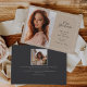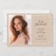 La hermosa invitación de fotos de graduación incluye una foto vertical o retrato alineada a la izquierda, con "nuestro graduado" y el nombre de su graduado, escuela y año de graduación a la derecha. El detalle geométrico delgado completa el aspecto. Añade un mensaje personal a la parte posterior, junto con una foto adicional.
