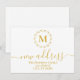 Celebre su gran mudanza con estilo con esta elegante Tarjeta de Anuncio de Nuevo Domicilio, que presenta una guirnalda botánica dorada minimalista y un diseño de monograma clásico. Personalizada con su inicial y detalles de contacto actualizados, esta tarjeta postal sofisticada es perfecta para informar a amigos y familiares sobre su nueva dirección. Una elección moderna y elegante para parejas, familias o individuos que comienzan un nuevo capítulo.