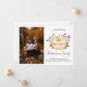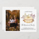 Una elegante calabaza blanca con una postal de invitación móvil de otoño para informar a sus amigos y familiares que se ha mudado a un nuevo lugar durante las vacaciones con la foto familiar en la parte delantera.