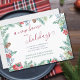 Tarjeta de invitación móvil de vacaciones con tipografía manuscrita y marco botánico de color acuático de invierno con pinos y hueso. Este diseño de doble cara está escrito con "Un nuevo hogar para las vacaciones" y el texto de su personalizado en la parte delantera y "Feliz Navidad" en la parte trasera. La plantilla está configurada para que agregue su nueva dirección, cierre de sesión y nombres. Un diseño elegante y festivo en tonos rojos, verdes y azules.