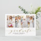 Anuncia tu graduación a familiares y amigos con este Anuncio de Graduación con Foto, diseñado con un collage de tres fotos y la palabra "graduado" en elegante letra script delicada. Este anuncio personalizable te permite mostrar tres de tus fotos de graduación favoritas, capturando tu viaje y los momentos que llevaron a este hito. La letra script delicada añade un toque de sofisticación y encanto, complementando perfectamente la disposición y el diseño modernos.