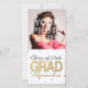 Puntos y círculos festivos de confeti con brillo dorado impreso y efectos de papel de plata. Agregue su año de graduación y nombre personalizados u otro texto para un divertido regalo de graduación personalizado. La apariencia metálica es moderna y trendy.