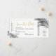 Hojas tropicales de palmeras (fronds) en un simple, moderno y minimalista boleto de avión de embarque para el diseño ahorran la tarjeta de fecha perfecta para una boda en la playa o una boda de destino de isla tropical con una moda retro-moderna en blanco y negro con estética de tema de color oro. Se puede personalizar todo el texto, así como el color del texto y del fondo. Haga clic en PERSONALIZAR MÁS AÚN para hacerlo en el editor avanzado.