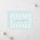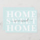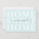 Anuncie su nueva dirección a amigos, familiares y asociados con esta moderna tarjeta de invitación móvil Hogar Dulce Hogar. Un fresco fondo de agua pastel tiene un texto blanco "Hogar dulce hogar" con letras en negrita y modernas. "Hemos movido" el texto está sobrepuesto sobre el texto de fondo en un tipo de letra manuscrita gris carbón. La parte posterior de la tarjeta tiene una plantilla de texto con un mensaje de ejemplo para proporcionar su nueva dirección y una nota breve, junto con otra información de contacto deseada. Puede agregar o quitar líneas de texto que desee personalizar el texto con la información deseada. Seleccione "hacer clic en el cliente más adelante" en la parte inferior de la plantilla de diseño para abrir la plantilla para editarla, agregar o quitar líneas de texto o mover el texto para reubicarlo como desee.