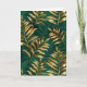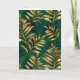 Patrón continuo de oro, joyas, ramas de helecho brillantes y hojas en un fondo verde texturizado de bosque. Helecho dorado.