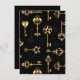 Patrón incomparable de llaves antiguas, doradas y de silueta sobre fondo negro.