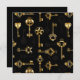Patrón incomparable de llaves antiguas, doradas y de silueta sobre fondo negro.