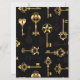 Patrón incomparable de llaves antiguas, doradas y de silueta sobre fondo negro.