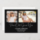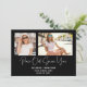 Modern Peace Out 2 Photo Script 2022 Black Graduation Invitación. Envíe la feliz noticia de su graduado de secundaria con este diseño minimalista sobre negro clásico. Encuentra tus dos divertidas fotos casuales favoritas de tu grado y simplemente reemplaza los ejemplos de la plantilla. El encabezado Peace Out Senior Year (Año principal de Peace Out) está en un estilo de escritura a mano definido debajo del nombre de su graduado y el nombre de High School o College y la clase de 2022 debajo, y añada un mensaje adicional en la parte posterior. También puede cambiar el color del texto y del fondo si lo desea a través de la opción personalizar.