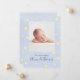 Bienvenido a tu pequeño con este anuncio de nacimiento fotográfico en azul suave, con un lindo ilustracion acuático inspirado en la rima infantil clásica, La vaca saltó sobre la luna. Con el acento de estrellas extravagantes y detalles juguetones, este diseño combina maravillosamente la foto de su bebé con estadísticas de nacimiento personalizadas en tipografía encantadora. Una manera dulce y mágica de compartir tu alegría con la familia y amigos mientras se crea un gran tesoro.