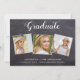 Anuncie su graduación a amigos y familia con estas rústicas tarjetas de invitación de pizarra de pizarra, divertidas y modernas fotos de collage. Personalizar con 3 de tus fotos favoritas de la universidad, y personaliza con el año de graduación, el nombre, la escuela secundaria o la universidad. ¡Estas exclusivas tarjetas de graduación de moda y elegante causarán una impresión duradera con la familia, amigos y compañeros de clase! DERECHOS RESERVADOS © 2020 Judy Burrows, Black Dog Art - Todos los derechos reservados. Personalizado Rústico de Graduación 3 Invitación de tablero de fotos
