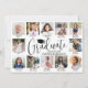 Share the joy of a high school or college graduation with modern custom photo collage announcements. The pictures and wording on this template are simple to personalize and the colors are easy to change using the Zazzle design tool. Captions under each photo can tell the graduate's story through the years and update family and friends of activities and accomplishments. On the back, include any details of your choice, such as party invitation info, parents' names, special honors, degree title, favorite inspirational quote, graduate's contact info, or plans for the future. The black and white design features modern script calligraphy with a mortar board cap, elegant classic serif typography, and 16 photos of your choice, such as K-12 school pictures, senior portraits, or images from the commencement ceremony. Available as both printed and downloadable digital announcements, these modern graduation cards are a stylish way to share a special day celebration with family and friends. Congratulations to the graduate!
