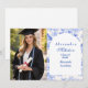 An elegant graduation celebration design featuring a delicate blue toile floral border inspired by classic European porcelain and vintage botanical prints. The intricate florals frame a clean arched center panel, creating a refined and timeless composition that highlights the graduate’s name and event details beautifully. Soft blue tones against a crisp ivory background give the design a sophisticated yet celebratory feel. Perfect for a stylish graduation gathering with a classic, romantic aesthetic.