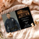 A bold and meaningful design created to honor a new police graduate. Featuring a rustic American flag paired with silhouettes of law enforcement figures, this layout blends strength, pride, and heritage. The dark background makes the metallic texture stand out, giving the card a powerful, masculine look.