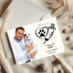 This graduation party design is created especially for a veterinarian graduate, featuring a clean, minimalist layout with a stethoscope and paw illustration. The modern black-and-white style keeps the focus on the achievement while adding a subtle, professional nod to veterinary medicine.