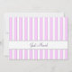 A custom New Address / Just Moved card with editable text in script and block letters front and back. The background has pink stripes light and dark with grey edges in a simple, classic background pattern.