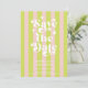 Retro Typography Wedding Save The Date Invitation. With a modern retro typography "save the date" in a striped soft pink and green color on the front with names and date, website or your own text in a simple and minimal design. A full-frame photo on the back of the wedding announcement. A unique Wedding Save the Date for couples looking for a fun and trendy look. Choose prints and/or a digital announcement download.