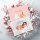 © Socialite Designs Inc. & LICENSORS. Anuncie el nacimiento de su bebé con este simple y elegante anuncio de nacimiento de animales de bosque. Los colores son rosa y gris. Reemplace la foto de la plantilla con su propia imagen. Hace una hermosa tarjeta de foto de keepsake para la familia y los amigos.