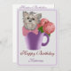Pink Hydrangeas y Yorkshire Terrier Feliz cumpleaños